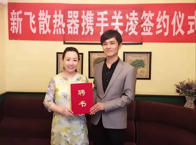 2016年新飛散熱器攜手《我愛我家》》關凌小姐,出任新飛散熱器形象大使,為愛家的新飛暖氣添愛加分! 隨著新飛散熱器有限公司王鵬濤副總經理與著名演員關凌在代言協議上的鄭重簽字,關凌正式成為新飛散熱器品牌形象代言人。相信此次著名演員關凌攜手新飛散熱器,必將通過明星效應,推動品牌的不斷前行,為企業注入新的靈感和發展動力。