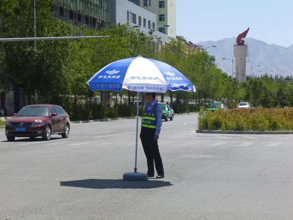 作為人民我們應該感謝他,格爾木市經銷商為他們送去了遮陽傘,警民共建和諧畫面!